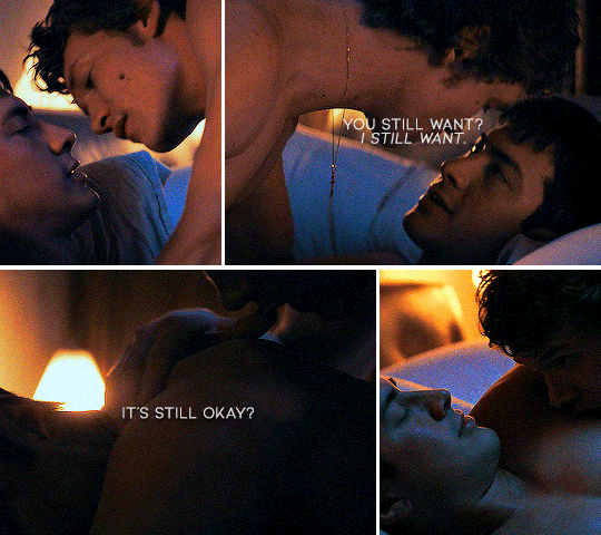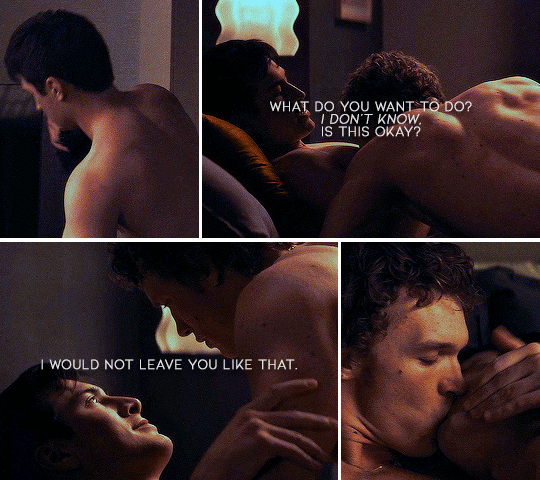 Lors de leur première fois ensemble, Ilya demande à Shane ce qu’il veut faire. Ils sont nus, couchés sur le lit. Shane lui répond qu’il ne sait pas. Ilya se tourne vers lui, prend son pénis dans sa main pour le masturber et lui demande immédiatement : « Is this OK? »