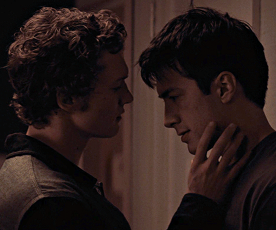 Ilya s’approche tranquillement de Shane. Il l’embrasse puis se recule, afin de lui laisser le temps de réagir. Puisque Shane a l’air de vouloir continuer, il l’embrasse à nouveau. À noter qu’Ilya ne touche pas Shane dans cette scène avant que Shane dépose sa main sur le bras d’Ilya. Shane est clairement plus nerveux et Ilya ne veut pas le brusquer.