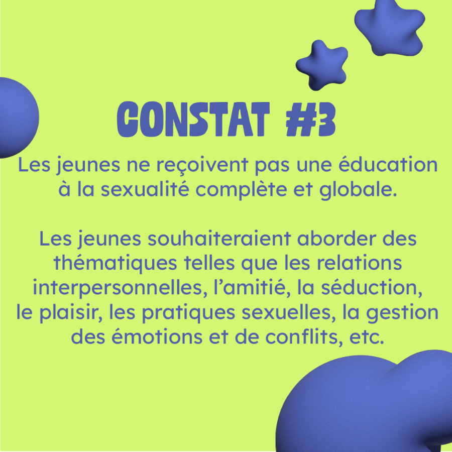 - Identifier les besoins en éducation à la sexualité des jeunes;